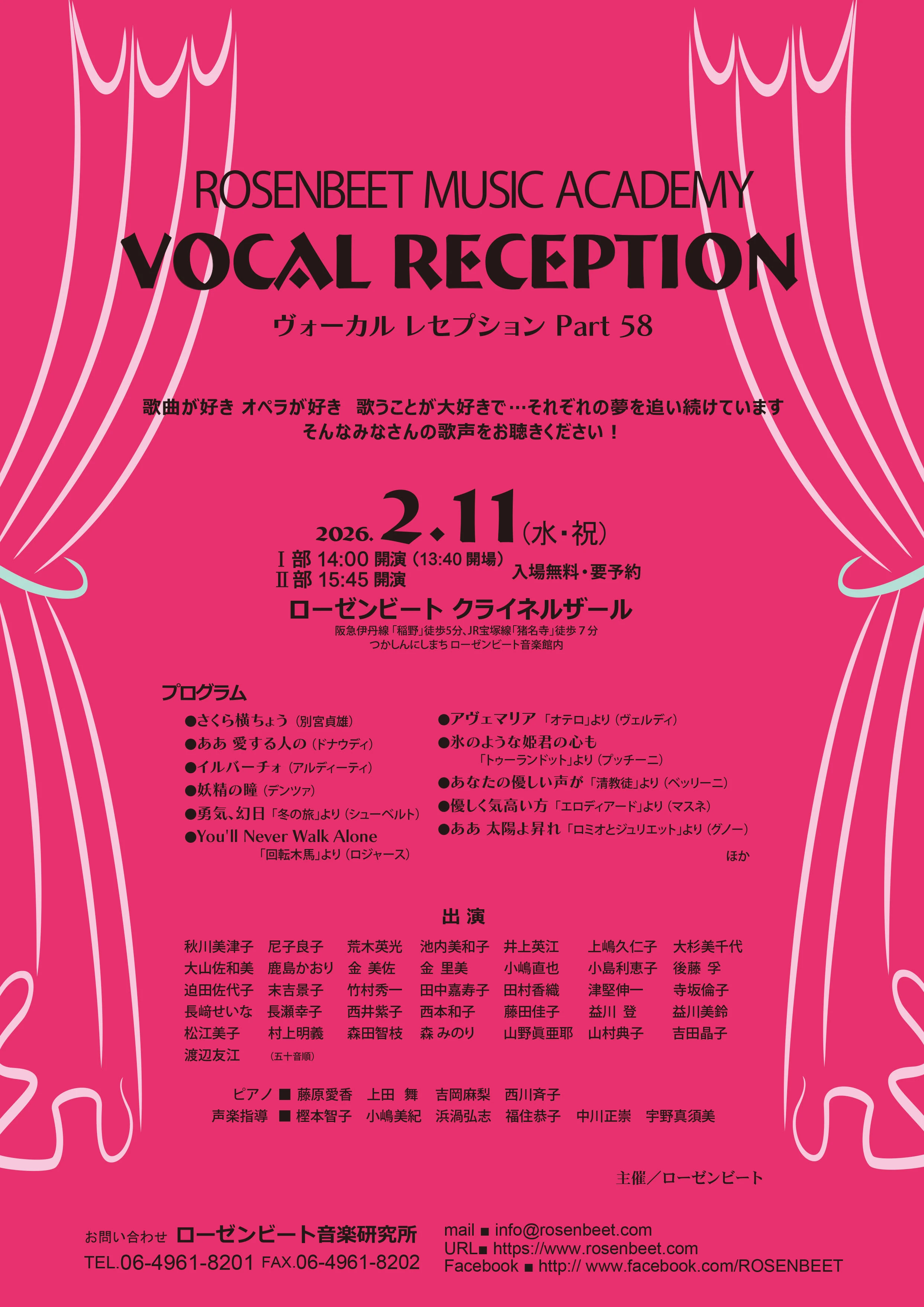 - 2026年2月11日(水・祝) 14:00~ 終了しました 音楽アカデミー コンサート&発表会 ヴォーカルレセプション Part 58