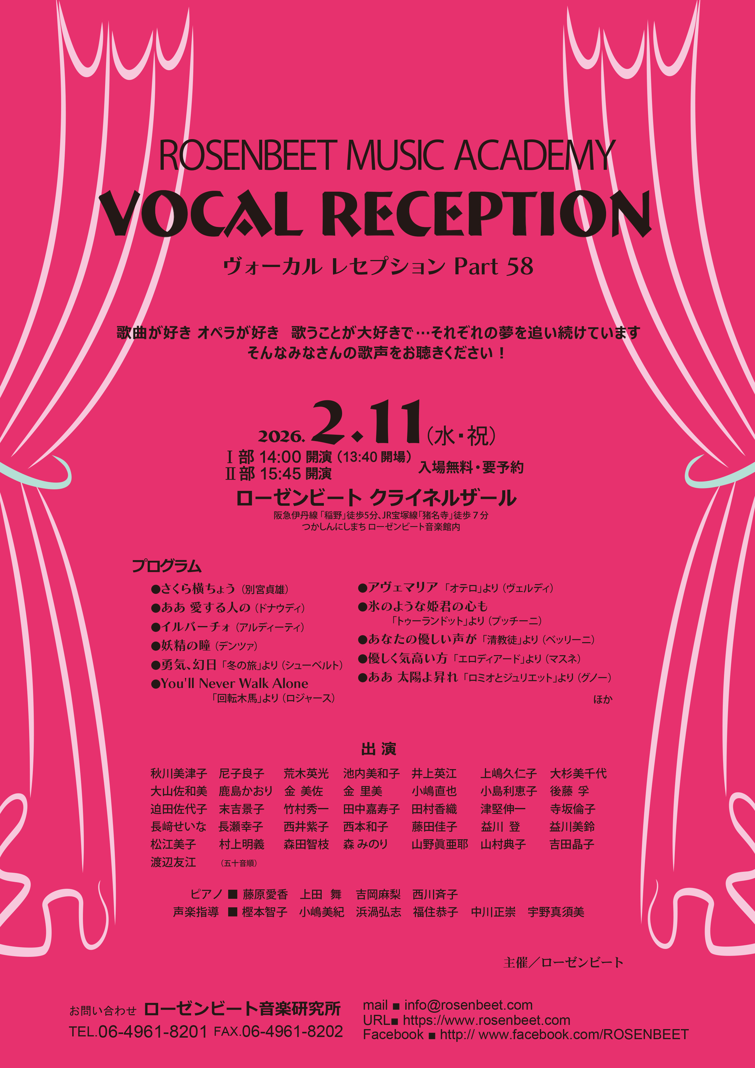 | ドイツ歌曲 | 第1,3土曜日 13:00~14:50 | 3ヶ月全6回 16,500円 |