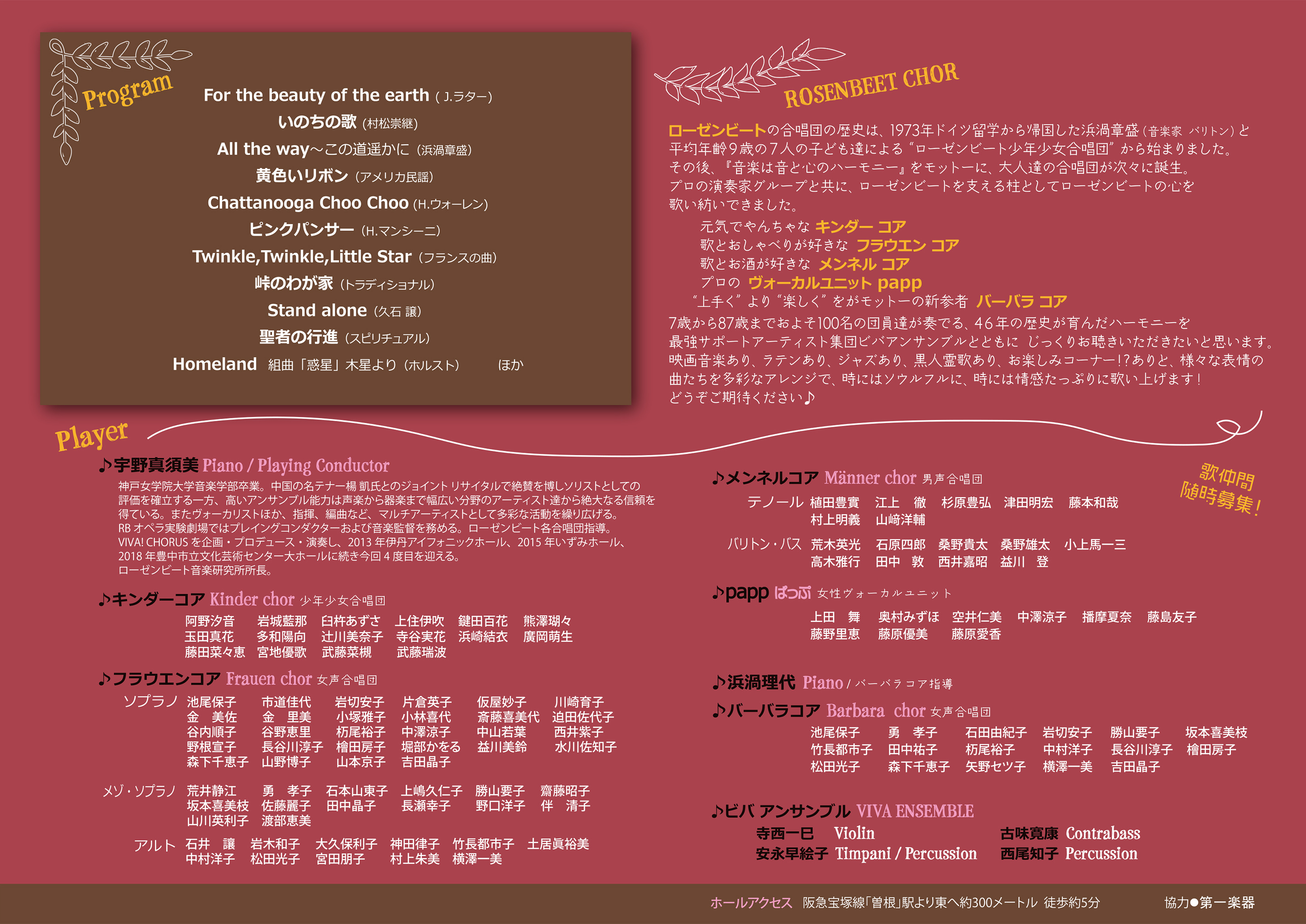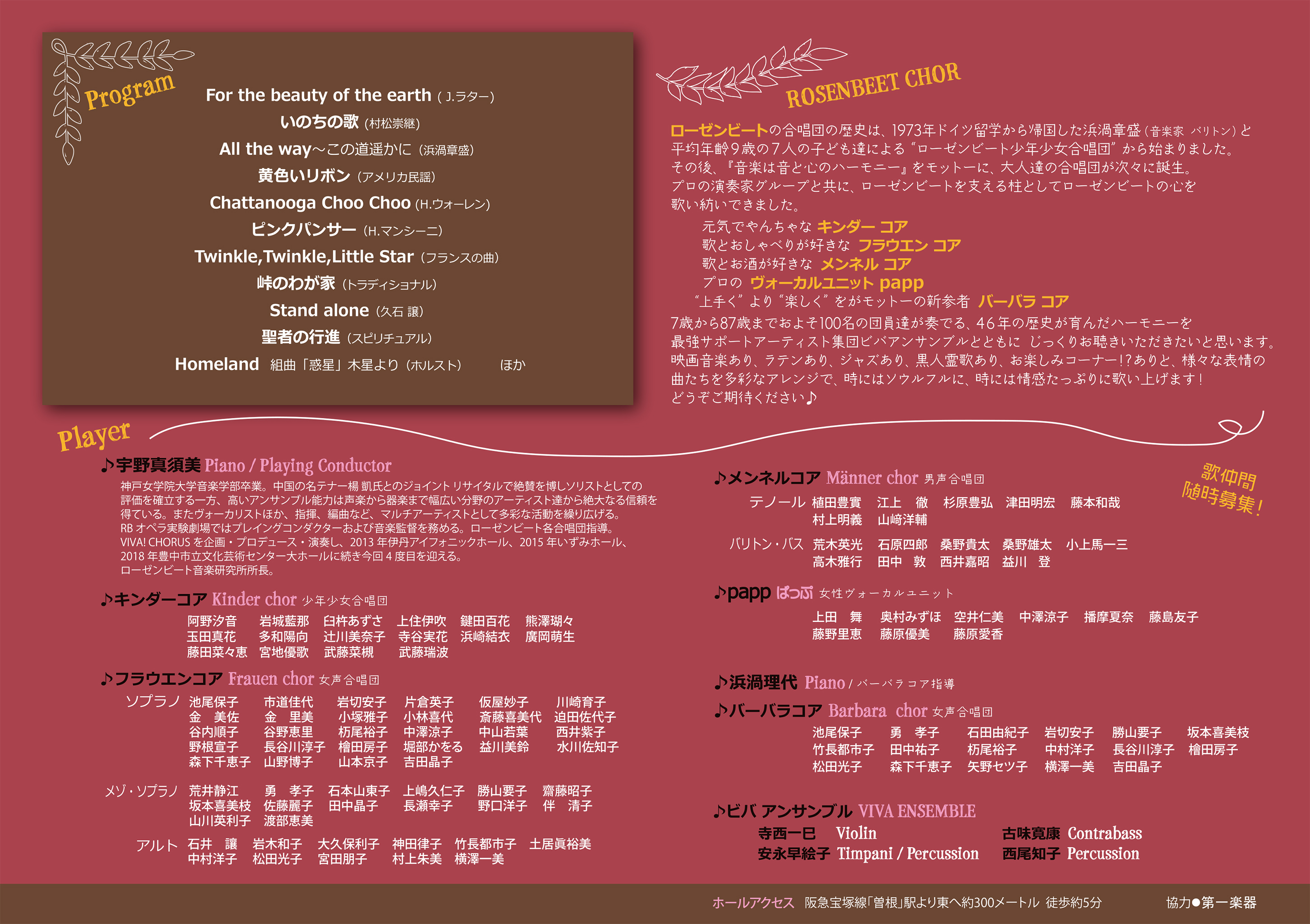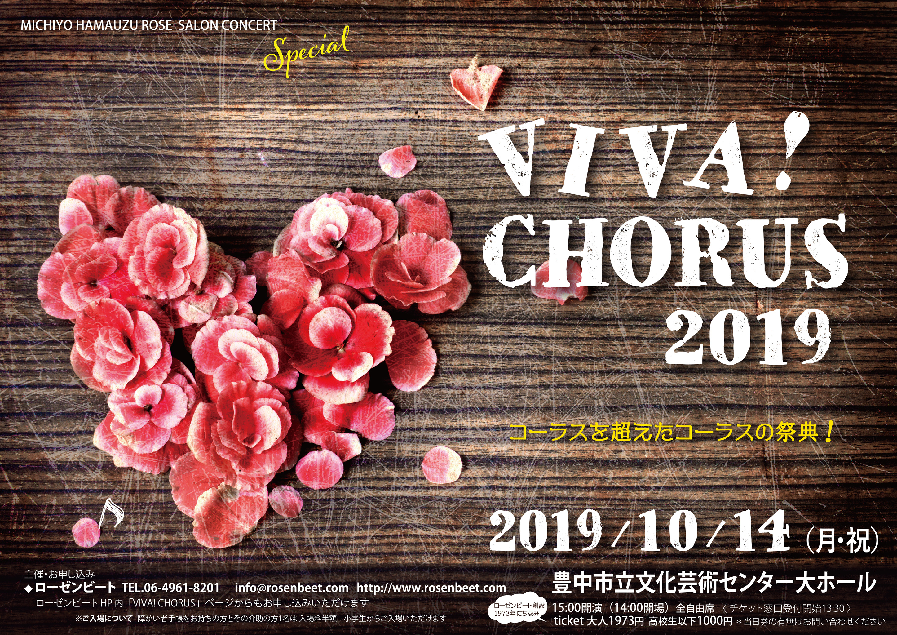 ローゼンビートの原点ともいえる合唱団が総力をあげてお贈りする大好評シリーズ “コーラスの祭典「VIVA CHORUS]”