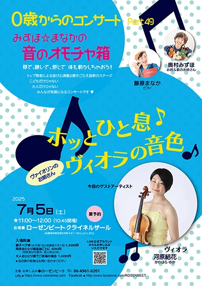 - 2025年7月5日(土) 11:00~ 終了しました 音のオモチャ箱 Part 49 「ホッっとひと息♪ヴィオラの音色」