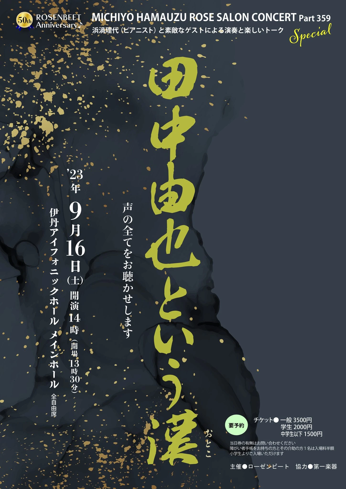 - 2023年9月16日(土) 14:00~ 終了しました 浜渦理代 ローズサロンコンサート 浜渦理代ローズサロンコンサート Part 359 「田中由也という漢(おとこ)」 ~声の全てをお聴かせします