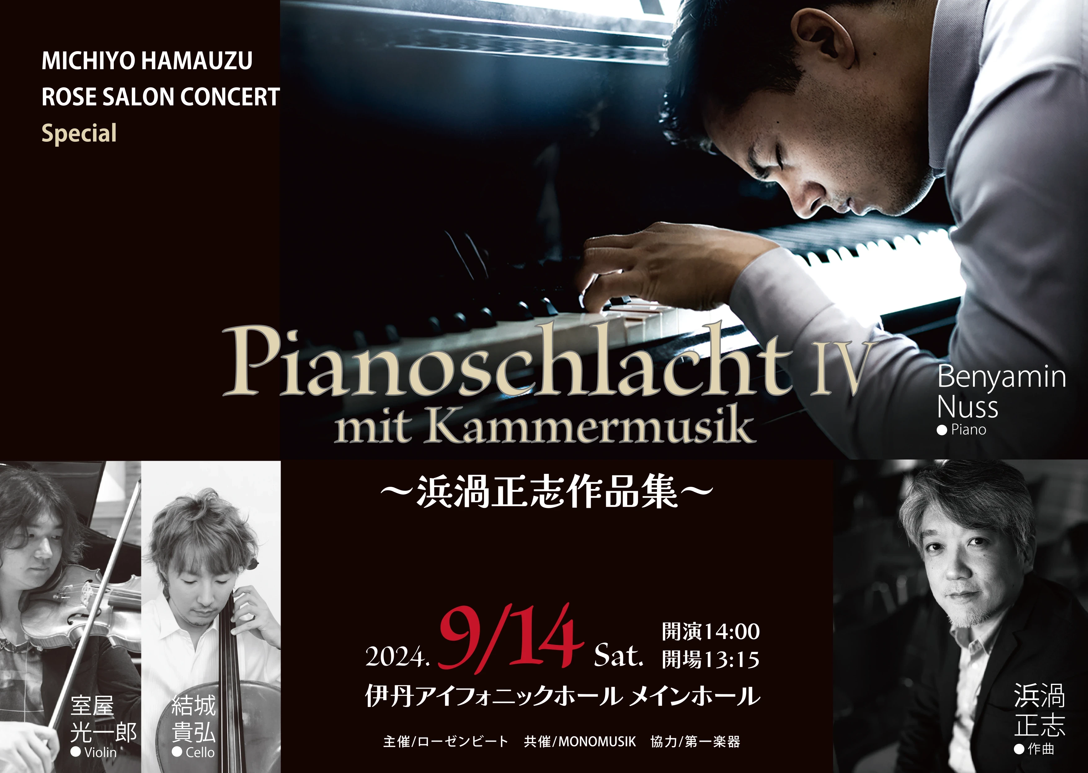 - 2024年9月14日(土) 14:00~ 終了しました 浜渦理代 ローズサロンコンサート 浜渦理代ローズサロンコンサート Part 363 「Pianoschlacht Ⅳ mit Kammermusik ~浜渦正志作品集~」 Special 公演